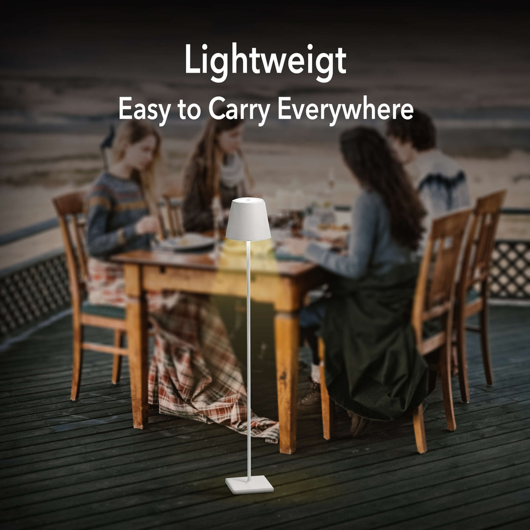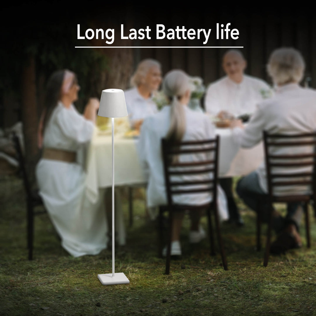 Die CordLume™ P3DG Stehlampe wurde mit Blick auf Langlebigkeit entworfen und ist wasserdicht nach IP54. Sie bietet Schutz vor Spritzern und ist sowohl für den Innen- als auch für den Außenbereich geeignet. Ihre lackierte Oberfläche strahlt Raffinesse aus und sorgt für langlebige Qualität. Darüber hinaus verfügt die Lampe über ein USB-Ladekabel zum bequemen Aufladen. Das Aufladen dauert nur 3-4 Stunden, bis die volle Kapazität erreicht ist.