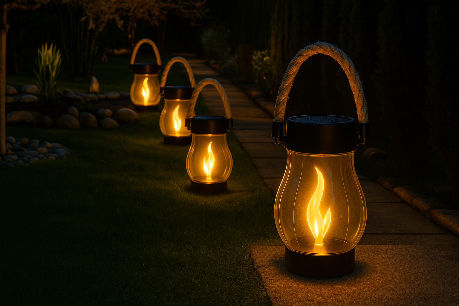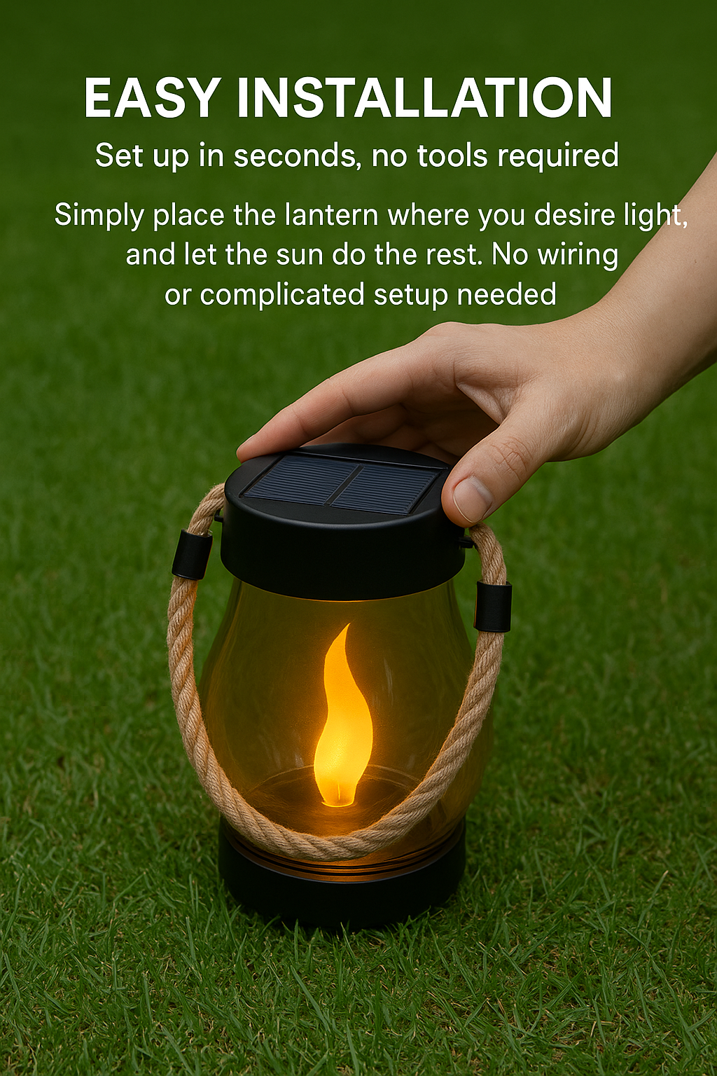 - Automatic Night Illumination – As dusk falls, the lantern automatically turns on, providing a warm, flickering glow without any switches or wiring.