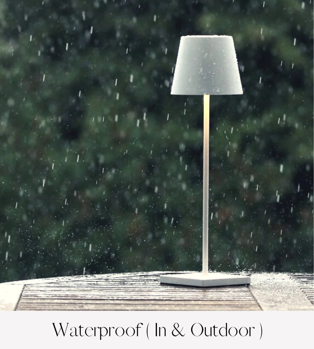 Cordless™ extends its reach beyond indoor spaces, featuring a waterproof design that makes it the ideal companion for outdoor adventures and gatherings. Whether you're hosting a poolside party, unwinding in your garden, or caught in a sudden rain shower, Cordless™ ensures uninterrupted and worry-free lighting with its waterproof construction. Let Cordless™ light up your outdoor activities with its enchanting glow, bringing sophistication and convenience to any outdoor setting.